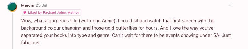 No, really. These are the things I always consider when I’m building a digital home for a client—whether they are a debut novelist or a wildly successful, well established authors. And while I love when they love their sites, my favourite feedback comes from their readers.