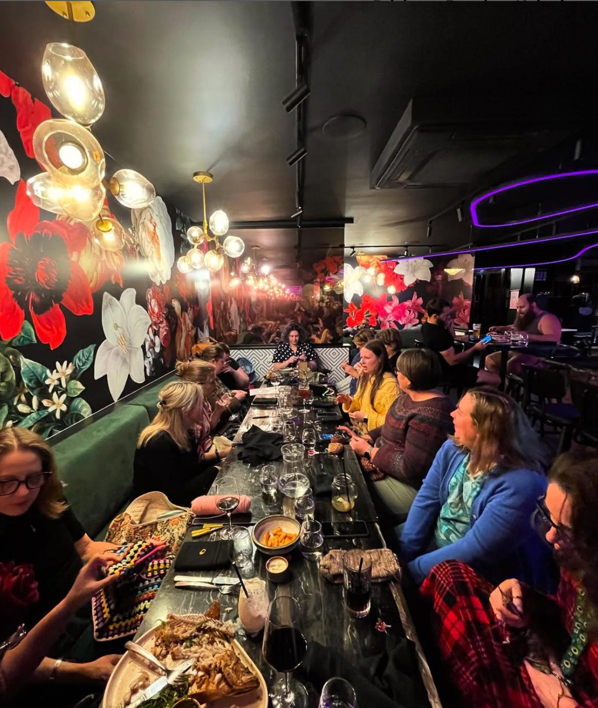 spurred a return to meditation for me last year and Iâd fallen off the wagon again. Picking the practise back up has been the biggest contributing factor to enjoying my writing and lowering my stress levels. Iâm feeling increasingly more frequent moments of peace in my life and finding it easier to get into creative flow.⨠Recommitted to slow fun: I am almost finished a tank top I started knitting months ago (pic above, me with my knitting circle). I find the practise of knitting to be so beneficial. Mostly because Iâm a raging perfectionist and a terrible knitter. Iâm having to make space for being both bad and imperfect at something. I have rage-quit that tank top like three times so far. I also bought myself a Kobo for my birthday and am enjoying getting back into reading fictionâŚitâs been a while but Iâm really looking forward to reading Atmosphere by Taylor Jenkins Reid in a few days time.